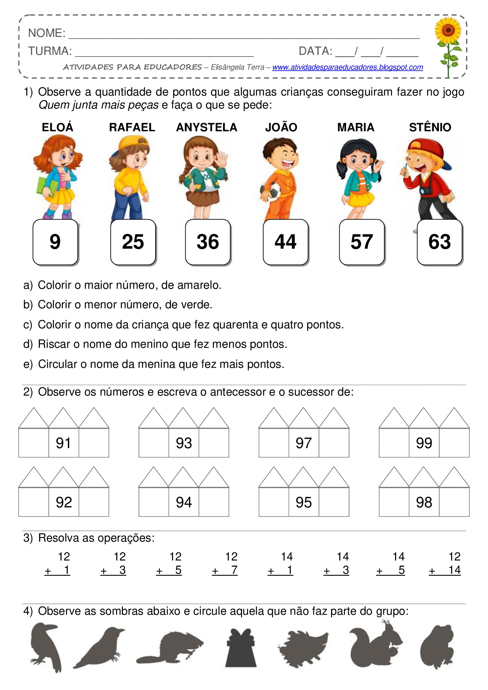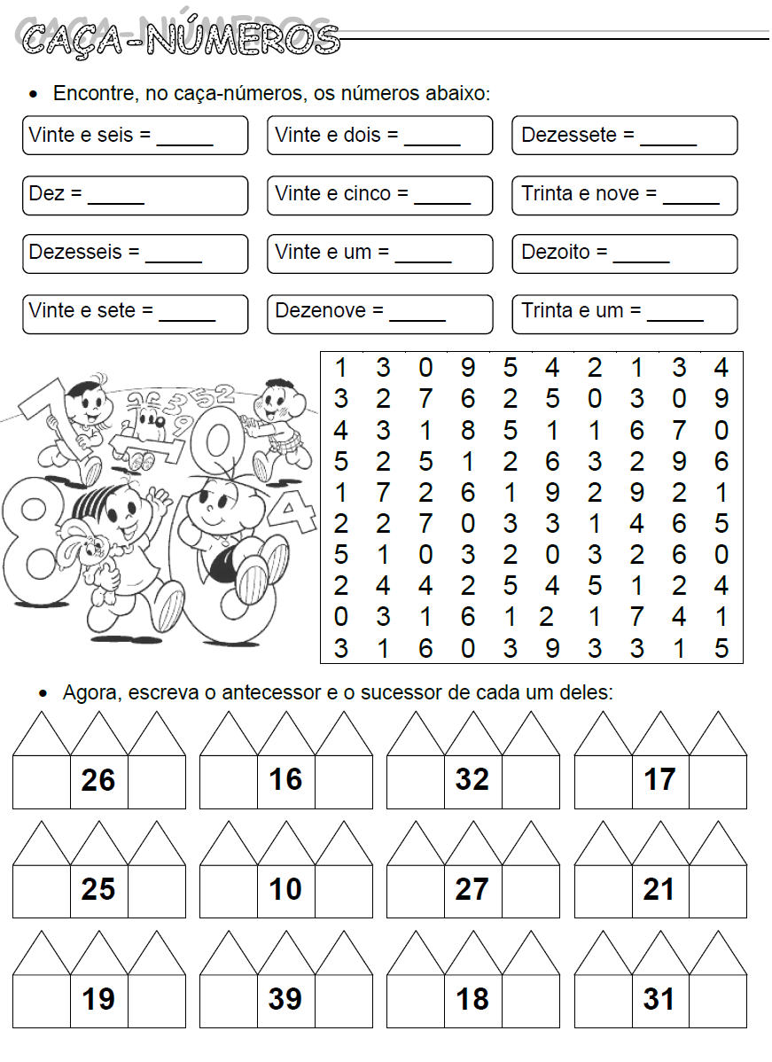 Atividade de Matemática Antecessores e Sucessores — SÓ ESCOLA
