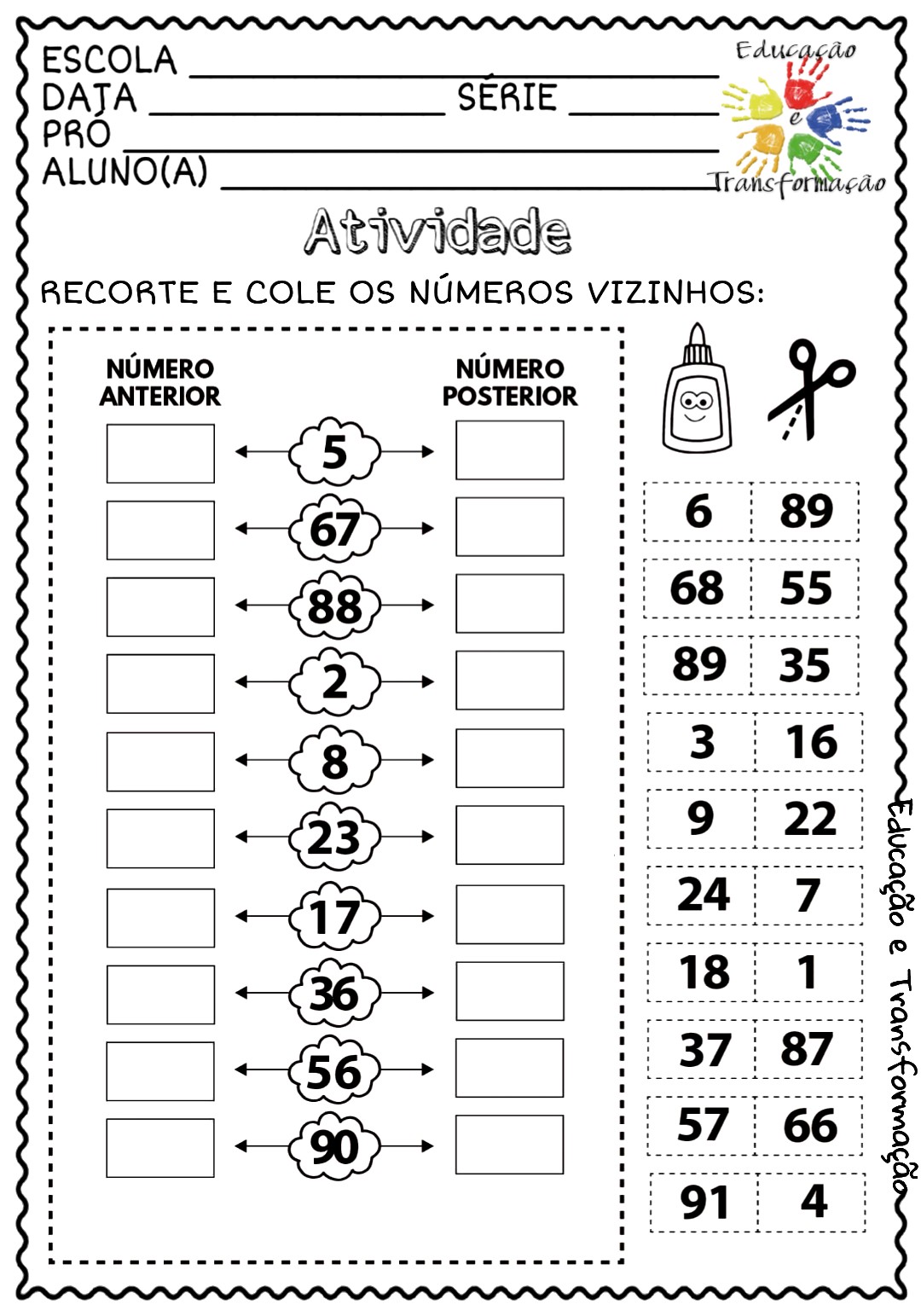 Antecessor e Sucessor. Essa atividade é indicada para o 2º do Ensino Fundamental I, mas pode ser utilizada com o 1º ano, dependendo do nível da sua turma. Tem por objetivo entender a sequência numérica e reconhecer os conceitos de antecessor e sucessor. Como sugestão faça brincadeiras de contagem com os alunos, cada criança falando um.