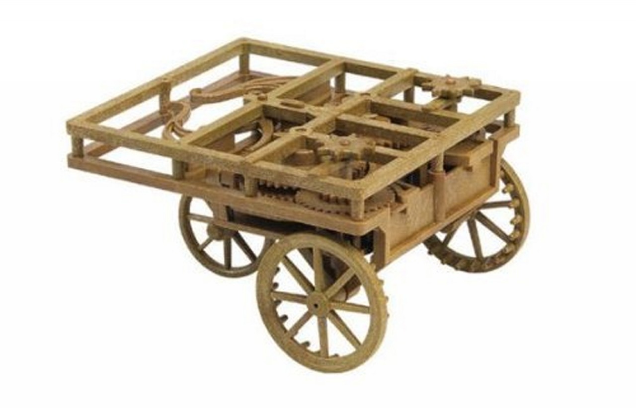 Cinco séculos depois de sua morte, cientistas italianos finalmente conseguiram interpretar o projeto de Leonardo da Vinci para um carro, e recriá-lo. A invenção é considerada um precursor do.