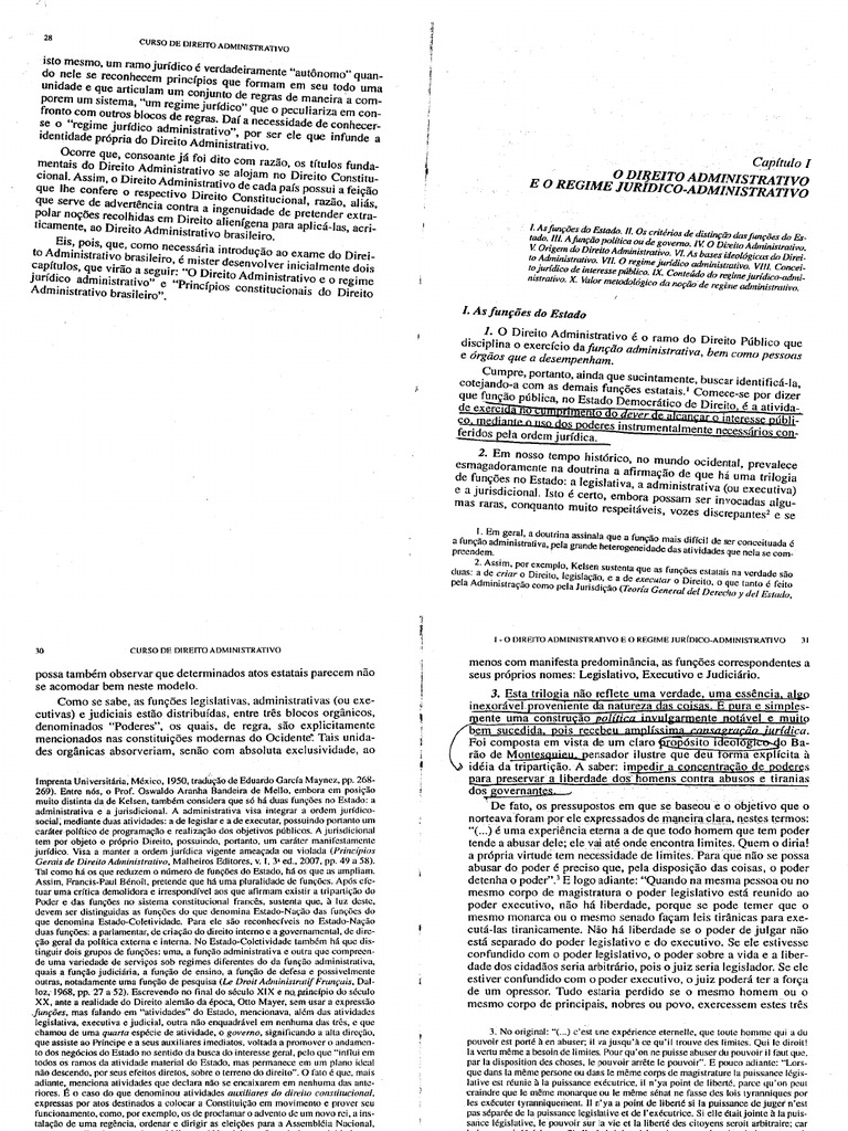 Celso Antônio Bandeira de Mello Capítulo I O Direito Administrativo e o Regime Jurídico