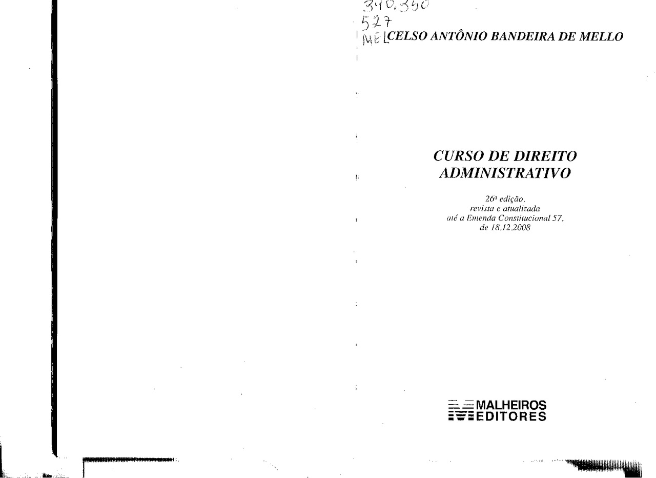 1 revision. Download catalog record: RDF / JSON / OPDS | Wikipedia citation. Curso de direito administrativo by Celso Antônio Bandeira de Mello, 2013, Editora Malheiros edition, in Portuguese - 30a. edição, revista e atualizada até a Emenda constitucional 71, de 29.11.2012.