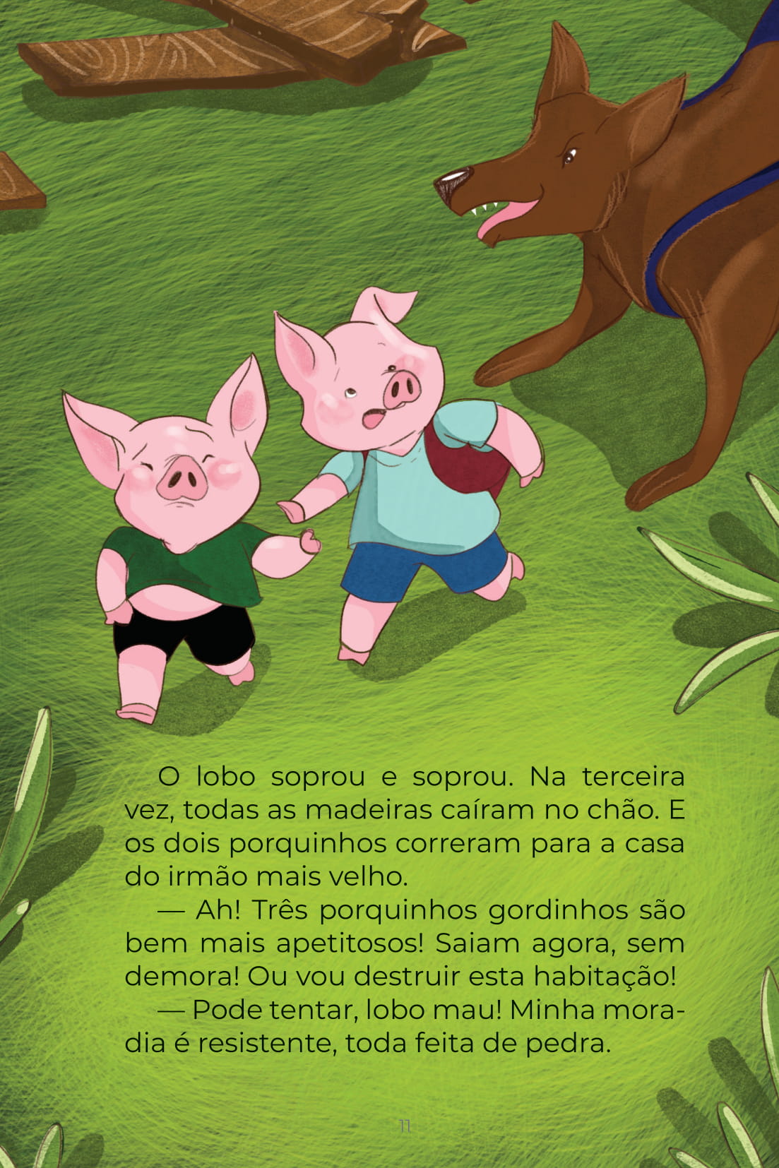 Resumo. Era uma vez três porquinhos irmãos que viviam com a mãe. Dois porquinhos não ajudavam em nada na casa, enquanto o terceiro porquinho sentia pena da quantidade de trabalho que a mãe tinha. Um belo dia, a mãe, ciente da maturidade dos filhos, orientou que os porquinhos saíssem de casa para construírem suas próprias vidas.