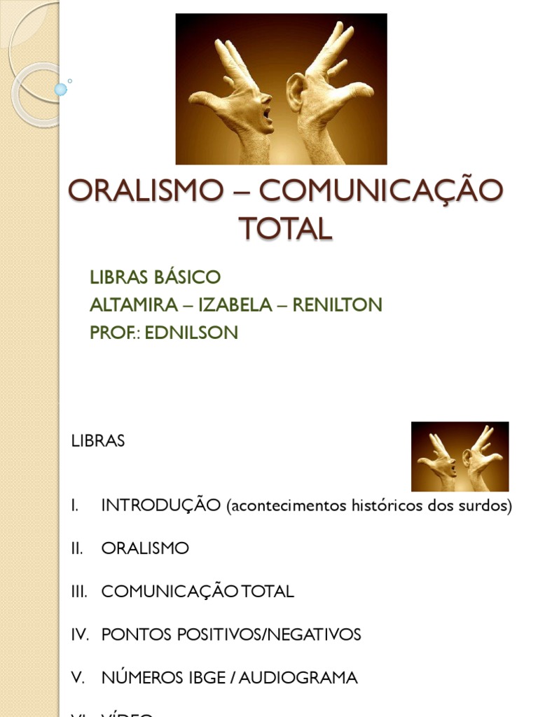 ORALISMO COMUNICAÇÃO TOTAL SLIDES.pptx PDF Perda de Audição Comunicação