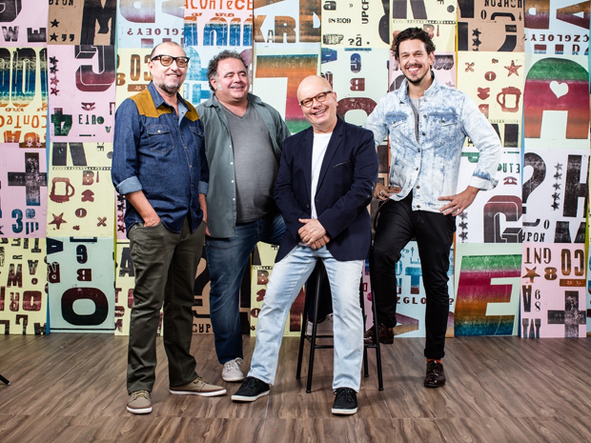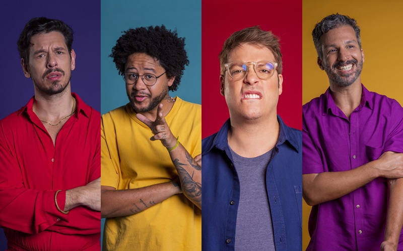 22/04/2024 03h00 Atualizado há 5 dias. Eduardo Sterblitch (em primeiro plano), Russo Passapusso, Francisco Bosco e João Vicente de Castro comandam o Papo de Segunda — Foto: Guto Costa.