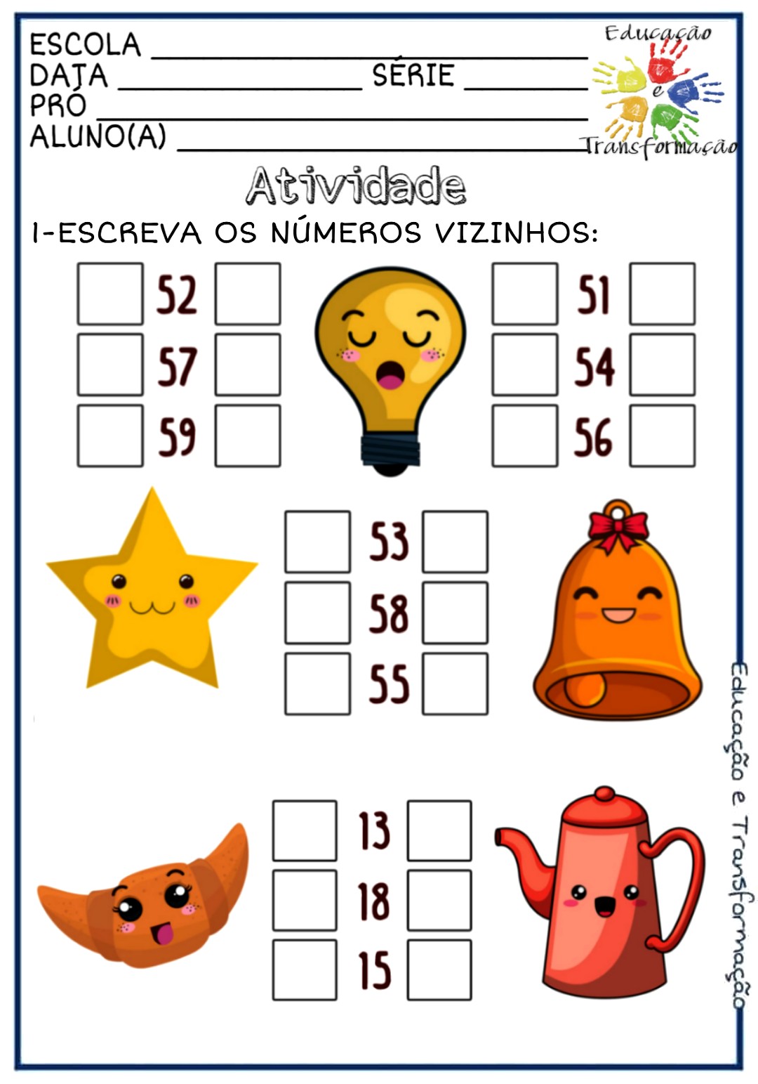 Números vizinhos Atividade para trabalhar os antecessores e os sucessores dos números