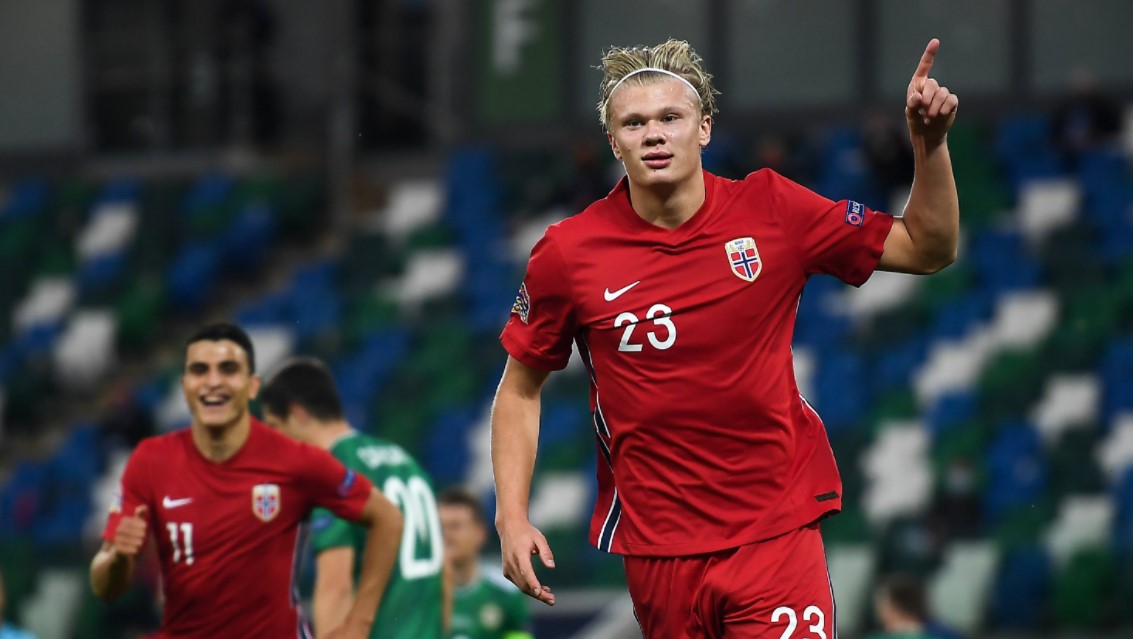 Até que demorou no terceiro jogo, Haaland fez seu primeiro gol pela Noruega